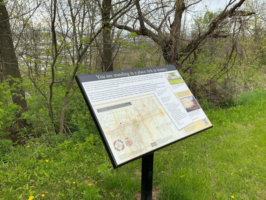 Turkey Point, Norfolk County, Ontario – On Saturday, 27 September 2025, the Grand River Branch had a grand unveiling and dedication of the Mabee/Secord plaque. There was a turnout, on a beautiful afternoon, of about seventy-five descendants, friends and interested parties, in attendance. Some were in period dress and all were enthusiastic as the colour party presented the flags and all lustily joined in the singing of “God Save the King”. This was followed by a most interesting account of the family histories presented by Paul Smith UE, a descendant of both the Mabee’s and the Secord’s. Paul served Laura Secord chocolates jus to add to the enjoyment of the day.